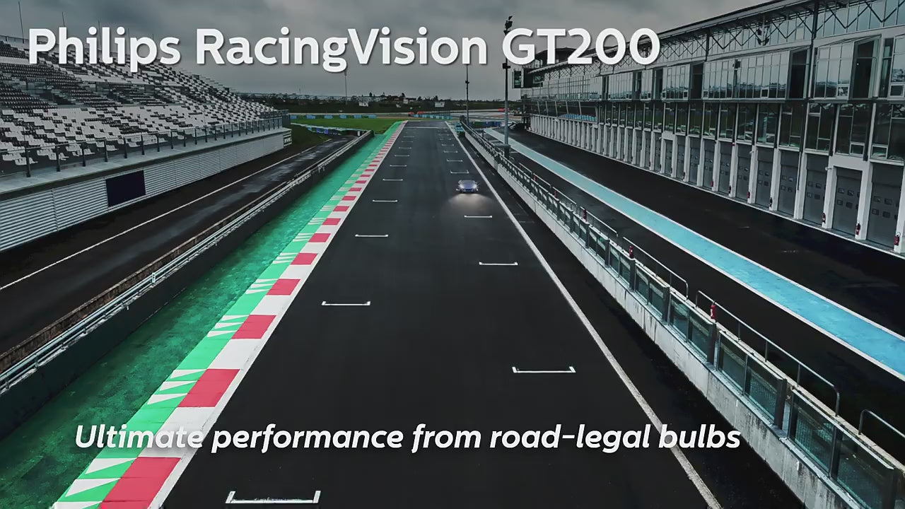 Philips RacingVision GT200 H7 halogen headlight bulbs deliver up to 200% brighter light, projecting illumination up to 80 metres farther for enhanced night driving safety. Engineered with patented quartz glass and advanced coating technology, these bulbs ensure precise beam placement and exceptional durability under extreme conditions. With a 3500K colour temperature and full ECE approval, the GT200 offers the brightest street-legal halogen lighting, ideal for drivers seeking superior performance without compromising legality or safety. This pair of 12V PX26d bulbs is designed for expert-level lighting demands.